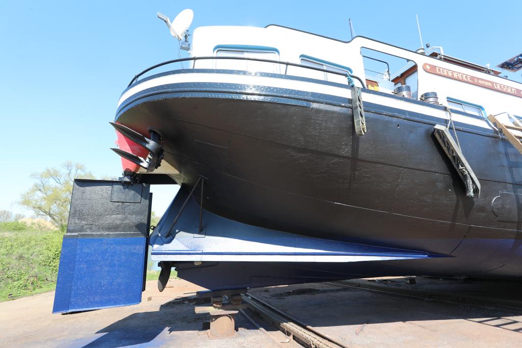 Confiance Onderwaterschip hogedrukreinigen en conserveren Voor familie Huijgens Joosten verzorgden wij de reiniging en conservering van het vlak en zijden van het motorschip Confiance. De fris blauwe antifouling voorkomt het aangroeien.